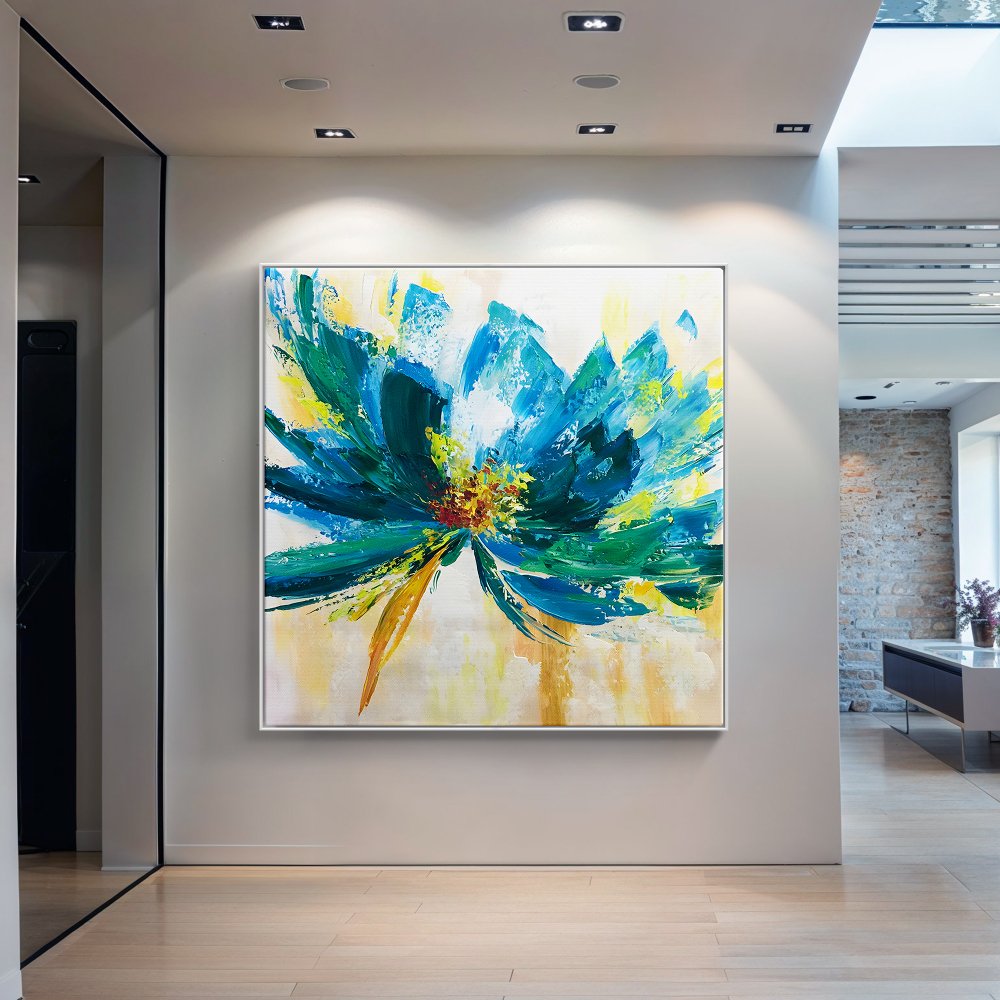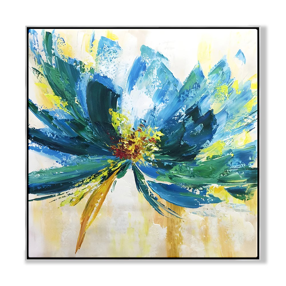 Translated from Spanish, this beautiful, new art piece is called 'Blue Flower'! With an impressionistic style and a stunning color palette, this unique flower is a subtle eye-catcher! The different tones of blue work together beautifully, making this painting even more lively! ⁠