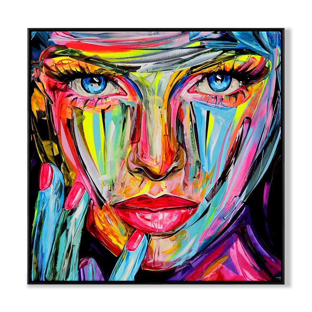 Monica is a modern portrait that features a cool lady who's just trying to live her life in an increasingly chaotic world. She's got a lot of different colors and an intense gaze, making you feel like you can take on whatever comes your way!⁠