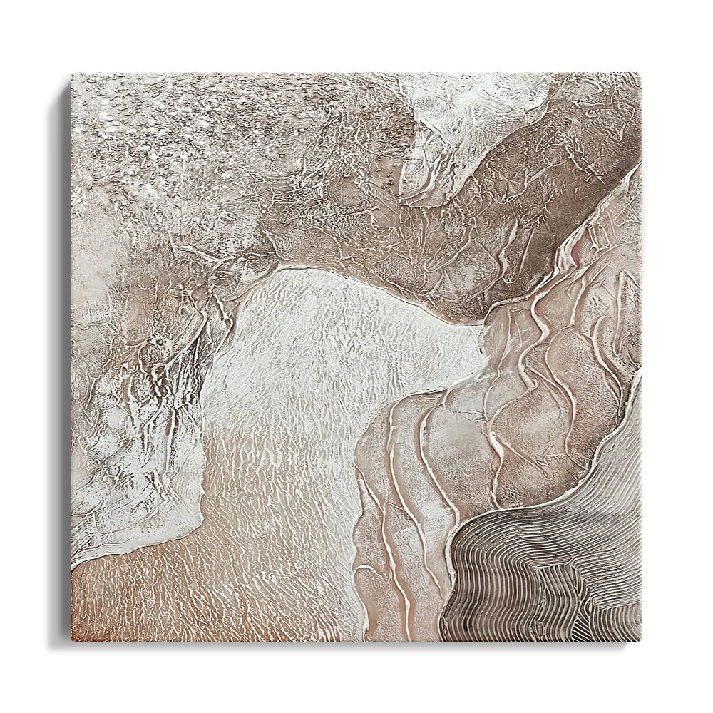 In this artwork, waves crash and swirl in a riptide, painted in beachy colors. The dynamic composition captures the movement and power of the ocean. The colors of the sea and sand come alive, making you feel the dangers of a riptide.