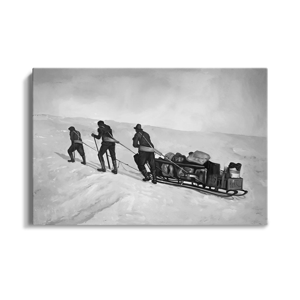 Santa Claus is on his way back to the North Pole, just like these brave adventurers! The beautiful realism style draws you into the vast tundra landscape. And the black & white composition creates a wondrous aesthetic wherever portrayed! ⁠